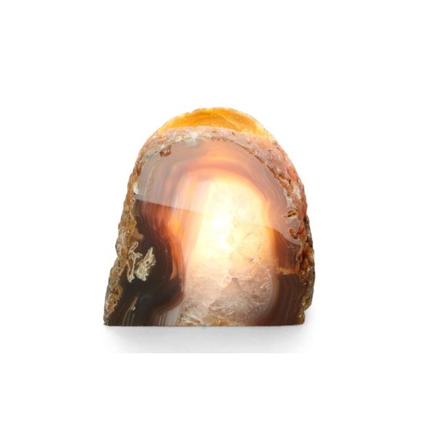 Použití: Achátový svícen je ideálním doplňkem do interiéru, protože dokáže vytvořit uklidňující atmosféru. Světlo z hořící svíčky dává vyniknout originální achátové kresbě a některým barevným tónům.